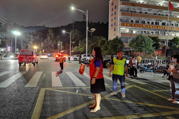 w66旗舰厅党团志愿者分队队员现场维护交通秩序
